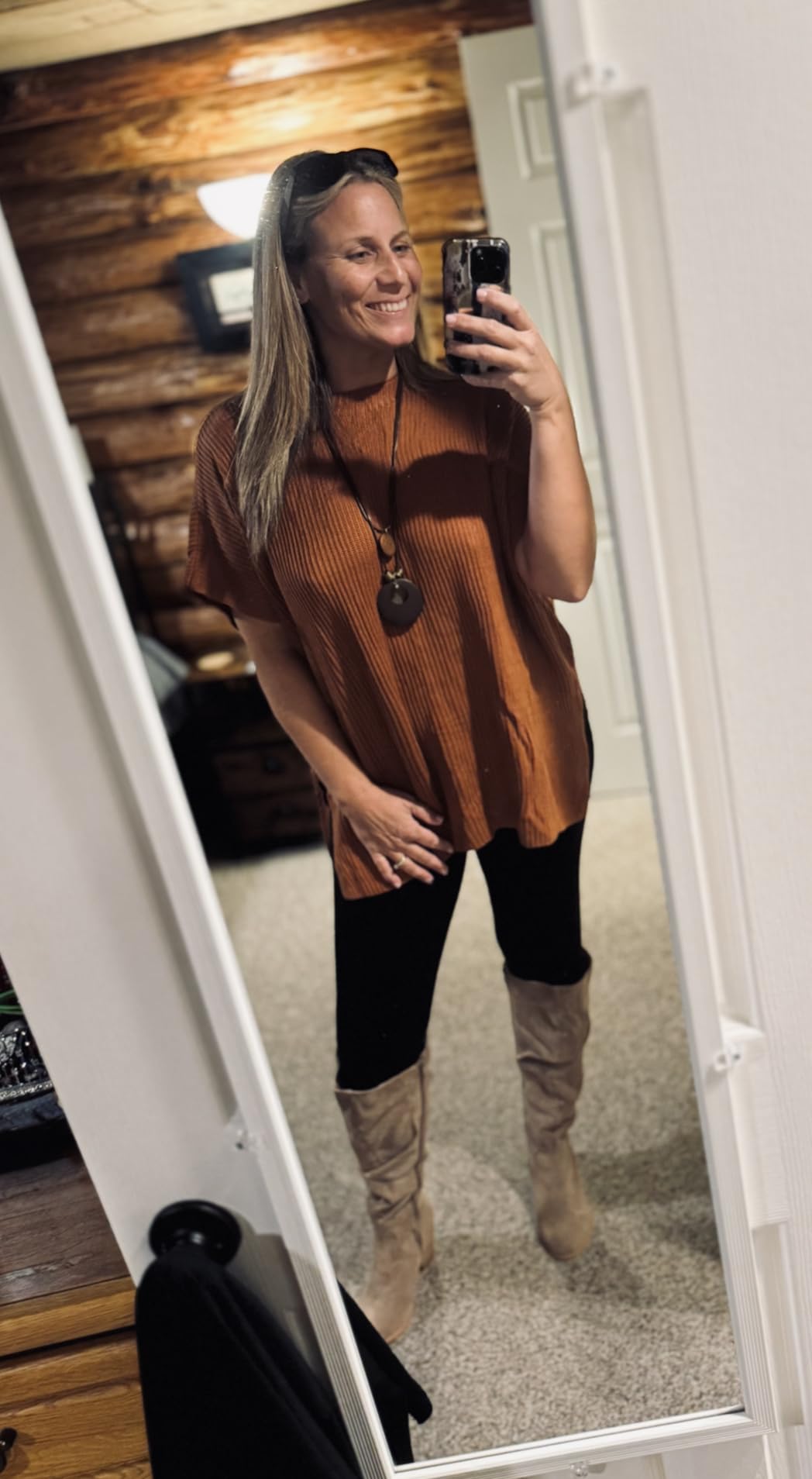Absolutely love this sweater tunic! Its the perfect color and length. I like that it's oversized. Love this sweater!! I love it so much that I bought a second one!